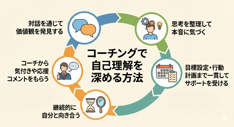 次のセクションでは、コーチングで自己理解を深める具体的な方法を見ていきましょう。
